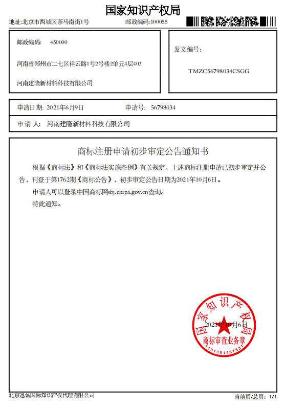 國家知識產權商標注冊初步審定通知書