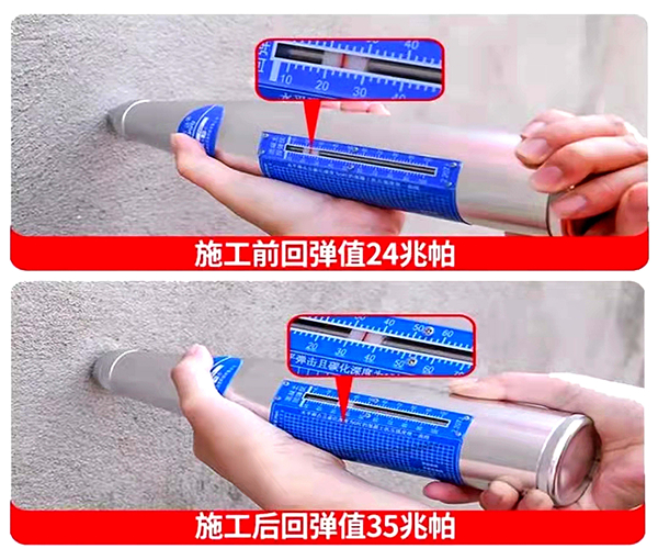 3、新舊混泥土地面、墻面、立柱涂刷、提高度度、回彈值一般能提高10%-15%。